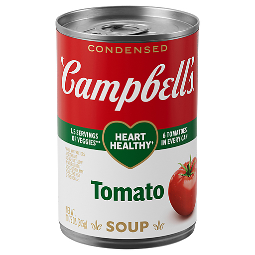 Cozy up with a steamy bowl of Campbell’s® Condensed Heart Healthy* Tomato Soup. This vegetarian soup is crafted with six farm-grown tomatoes and contains 1.5 servings of veggies in every can. The result is a canned tomato soup that brings a smile with every spoonful. Top this heart healthy soup* with Pepperidge Farm® Harvest Wheat Crackers, season it with fresh herbs, or pair it with a grilled cheese sandwich for something quick and easy. Our convenient canned soup is a year-round pantry staple and the perfect comfort food on a chilly day or when you’re feeling under the weather. Simply mix the condensed soup with 1 can of water or 1% milk and microwave on high for 2.5 to 3 minutes, or heat in a pot on the stove, stirring occasionally. Each 10.75 oz recyclable can contains about 2.5 servings of microwave soup and features a non-BPA lining. From Tomato to Cream of Mushroom and everything in between, Campbell's® makes delicious soups in flavors your family knows and loves with quality, farm-grown ingredients in every can. M'm! M'm! Good!® (*While many factors affect heart disease, diets low in saturated fat and cholesterol may reduce the risk of this disease.)