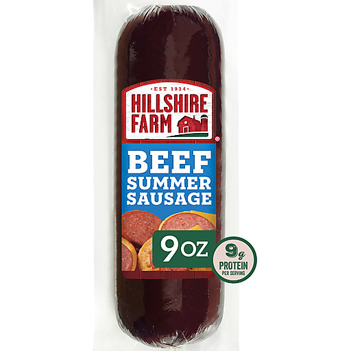 Made with quality cuts of beef smoked over natural hardwood, Hillshire Farm® Beef Summer Sausage is packed with rich smoke flavor in every bite. Fully cooked and ready-to-eat, simply cut and serve with sliced cheddar cheese and buttery crackers for a quick and delicious snack or appetizer. Includes one 9 oz. Hardwood Smoked Beef Summer Sausage. Quality is always the most important ingredient. Since 1934, Hillshire Farm has been dedicated to crafting delicious, quality products made with the best cuts of meat and flavorful ingredients. From meticulously smoked sausages to fresh tasting slow-roasted turkey, this drive has been with Hillshire Farm from the start. No matter what is created, it all leads back to an obsession with the farm, the food, and the craft.