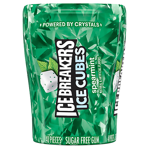 You never know when a quick jolt of flavor will come in handy. Fortunately, you don't have to guess. With this convenient 40-piece bottle of ICE BREAKERS ICE CUBES spearmint flavored chewing gum, you can have a sugar free burst of flavor by your side anywhere you go. Keep a bottle with you in the car, at home and in the office for quick, delicious satisfaction wherever the day takes you. ICE BREAKERS ICE CUBES gum pieces are made with xylitol, and they'll keep your taste buds busy and your breath minty fresh during meetings, after lunch, throughout movie nights and in the car on even your longest trips. Feeling generous? Display this vibrant cube near the candy dish at home or work to let guests, family members, friends and co-workers help themselves. They're sure to thank you for the long-lasting chewing gum treat. After all, it's just as good as a delectable minty dessert without any of the fuss. Celebrate the holidays with ICE BREAKERS sugar free chewing gum, too. Share a piece of sugar free gum with your sweetheart on Valentine's Day, add a bottle to Easter baskets and Christmas stockings and freshen your breath after you enjoy some Halloween candy.