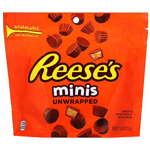 Don't let their small size fool you: REESE'S Minis milk chocolate peanut butter cups candies are huge on chocolate and peanut butter taste. Unwrapped and perfectly pop-able, REESE'S Minis candies make a delicious anytime treat. Plus, this resealable bag ensures you'll have plenty for sharing with friends and family during all your get-togethers. You can even have this bag tag along with you as you begin a road trip adventure or enjoy a pick-me-up at the office. Ready to kick your movie night up a notch? Share a bag of these unwrapped candies to keep everyone happily snacking throughout the film. Keep your home candy bowls and kitchen pantry stocked with delectable kosher certified treats featuring smooth milk chocolate and sweet peanut butter. Whether you need a Christmas stocking stuffer, Halloween trick-or-treat candy, Easter basket filler or a Valentine's Day present, REESE'S Minis peanut butter cups candies have you covered. Even your best-baked goods will stand out with these milk chocolate peanut butter cups. Make mini ice cream sandwiches, bake them inside your favorite cookie dough or put them in the freezer for a refreshing snack. Share them with friends and family, just don't forget to save some candies for yourself!
