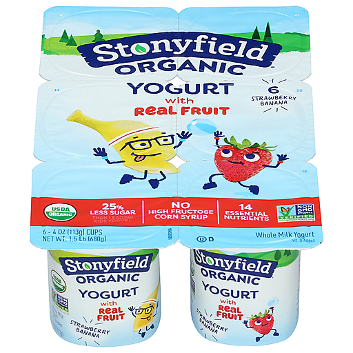 Hungry kids are no picnic. Fix it quick with Stonyfield Organic Whole Milk Yogurt Cups! Make morning yummy with an energy-boosting infusion of protein that's sure to help get kids out of bed and into the kitchen. Or pack a right-size yogurt cup for lunch, sports, camping, or on the go. We use 100% organic milk from pasture-raised cows, live and active cultures, and a variety of flavors made with real fruit to create a tantalizing snack for kids on the go. Includes vitamin D and calcium to support the growth and maintenance of healthy bones. Our yogurt is made without the use of toxic persistent pesticides, antibiotics, artificial growth hormones, or genetically modified organisms (GMOs), protecting growing kids for the long haul and contributing to a healthy and sustainable world. Try our full line of products for babies, kids and adults, including yogurt cups, yogurt pouches, multi-serving yogurt containers, dairy free smoothie pouches, drinkable yogurt, yogurt tubes and more. With fresh taste, high quality ingredients, and no added nonsense, Stonyfield Organic Yogurt for kids is #goodonpurpose!