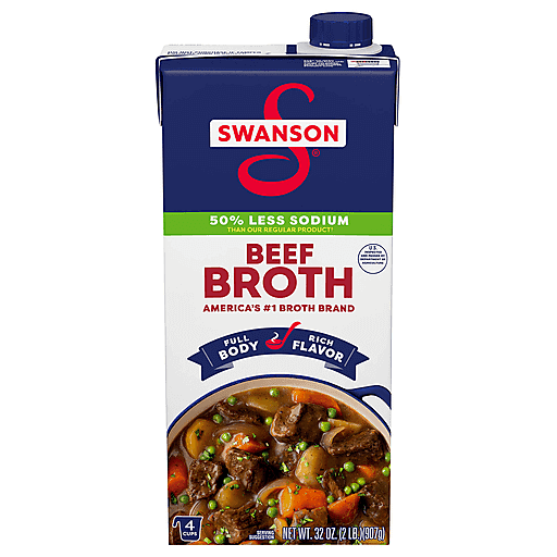 Bring rich, full-bodied flavor to your kitchen with Swanson® 50% Less Sodium* Beef Broth. Made with high-quality ingredients you can trust, this broth delivers the full body and rich flavor you love, but with 50% less sodium than our regular product*. Whether you're whipping up homemade soups, stews, or one-pot pasta dishes, this broth provides the perfect base for elevating your cooking without compromising on taste.